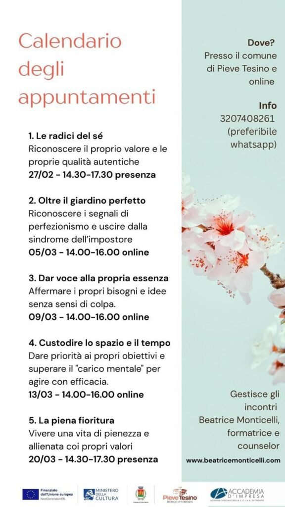 Un percorso di 5 workshop esperienziali, per liberarti dal peso della perfezione e riprendere in mano la tua progettualità.